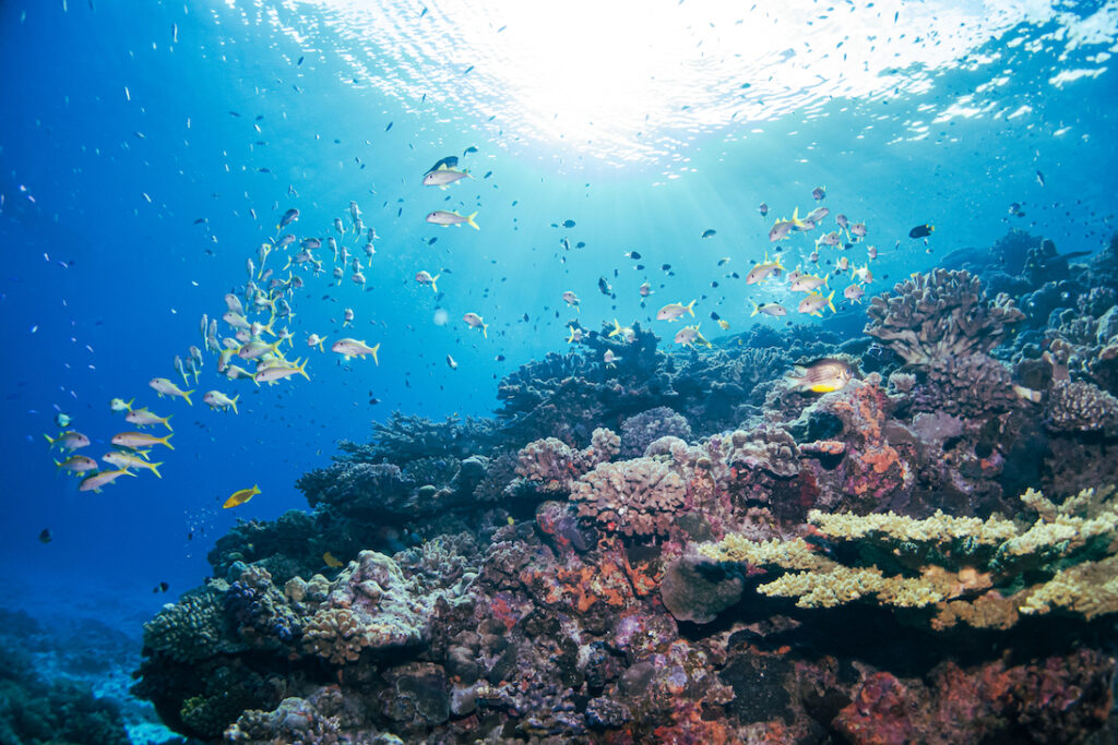 真っ白な砂地もあり、カラフルなサンゴもモリモリ。